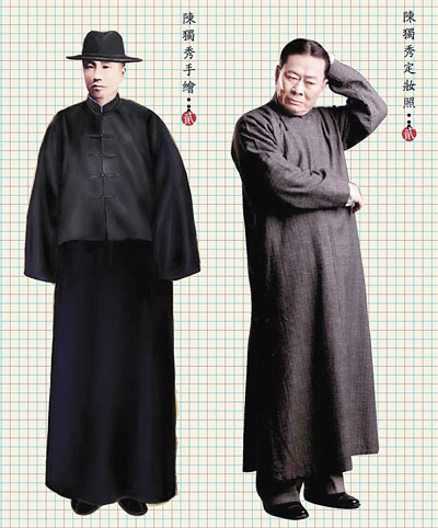 陳獨秀是我黨“一大”至“五大”期間主要的領導人。陳獨秀演好了,這部劇就“立”住了。為了陳獨秀這個角色我們找遍國內40-50歲男演員的資料。我們是1月8日開的機,可1月初到上海車墩外景后還沒有選定陳獨秀的人選。偶然的機會,我們翻閱上海電影制片廠的廠慶畫冊時,翻到了演員王詩槐。他和陳獨秀都是安徽人,都在上海生活、工作。“一方水土養一方人”,王詩槐和陳獨秀內在氣質應有相似之處。況且,我們這部劇的出品方是上海電影集團公司,王詩槐所在的上影劇團也屬于上影集團,這樣,也算用了回“自己人”。