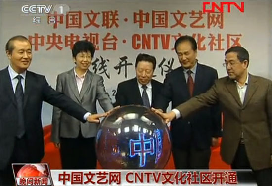 孫家正和蔡名照、趙實、李偉、焦利共同點擊開通中國文藝網和CNTV文化社區。