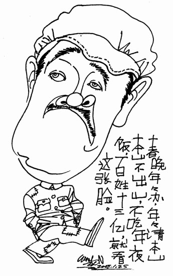 有關瓶頸的比喻,也開始與春晚相互糾纏,如影隨形。何為瓶頸?某事物中關鍵性的制約因素也。有學者直言,春晚瓶頸就是趙本山。去年,記者問與央視導演馬東有過一番舌戰的肖鷹教授說:“為什么就揪著趙本山不放?”肖教授回答:“第一,他太重要了;第二,他的問題也太大;第三,他的影響太嚴重。要將春晚從目前的困局中拔出來,趙本山這個問題一定要解決。”此言也意味著另一個事實,20年來,老趙那張自稱“豬腰子臉”確是春晚的“笑源”之一,與他先后出現的陳佩斯、趙麗蓉、宋丹丹、范偉,堪稱春晚歷史上最有人氣的五張喜劇臉譜。而今趙麗蓉老師仙去,陳、宋、范背影決絕,義無反顧,只剩下老趙一臉滄桑,四顧茫然,貌似熱熱鬧鬧的春晚舞臺竟變得如此空曠清冷。他只有寂寞堅守,孤獨求敗。但我相信,以趙本山的過人聰明,不會不明白樹大招風的危險,不會不懂得見好就收的道理,他完全可以在藝術的巔峰期完成華麗轉身,供后來者高山仰止。