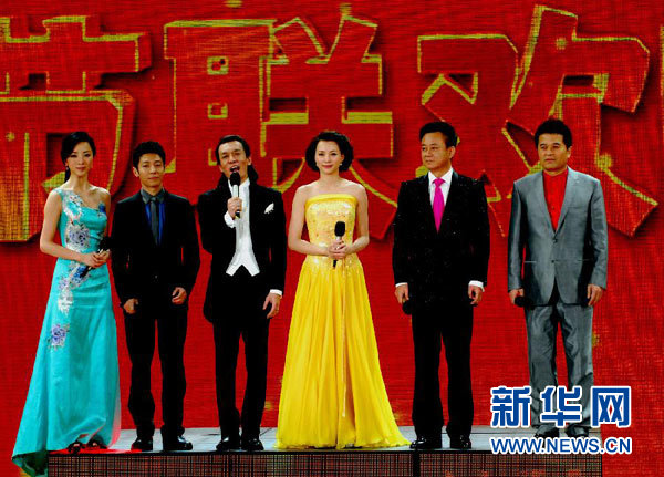 1月22日晚,中央電視臺(tái)將舉行2012年春節(jié)聯(lián)歡晚會(huì)。主題為“回家過(guò)大年”的央視龍年春晚將突出“年”的元素和“聯(lián)歡”“互動(dòng)”,晚會(huì)由39個(gè)節(jié)目組成,時(shí)長(zhǎng)260分鐘。這是彩排時(shí)拍攝的央視春晚主持人李思思、撒貝寧、李詠、董卿、朱軍、畢福劍(從左至右)。 新華社發(fā)