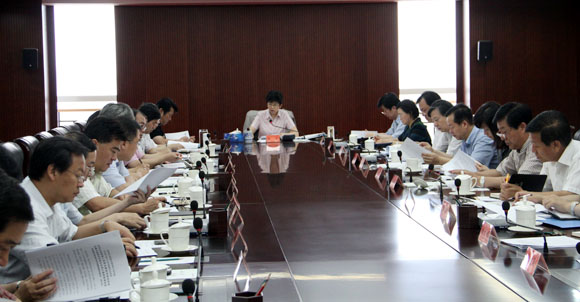 7月26日,中國文聯召開黨組擴大會議,傳達學習胡錦濤總書記在省部級主要領導干部專題研討班開班式上的重要講話和全國宣傳部長座談會會議精神。圖為中國文聯黨組書記、副主席趙實主持會議。中國文藝網 董大汗 攝