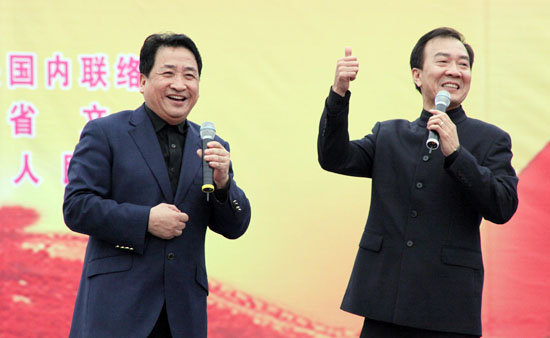 當天上午,中國文聯文藝志愿服務團藝術家小分隊還趕赴革命老區河南濮陽清豐縣雙廟鄉單拐村,劉蘭芳、姜昆、戴志誠、劉全和、劉全利等在冀魯豫軍區紀念館前為當地百姓獻上了精彩紛呈的文藝演出,贏得了陣陣叫好,而藝術家們與村民們的親密互動更是得到了大家的熱情響應,掌聲雷動。藝術家們紛紛表示,濮陽既是國家歷史文化名城、中國雜技之鄉,也是抗日戰爭時期冀魯豫根據地的腹心地帶,到這里演出非常有意義。而踐行文藝界核心價值觀,弘揚志愿精神,密切關注群眾需求,不斷提高服務水平是文藝志愿服務團和文藝工作者的努力方向,今后還要更加堅定地把文藝志愿服務這條路走下去。
