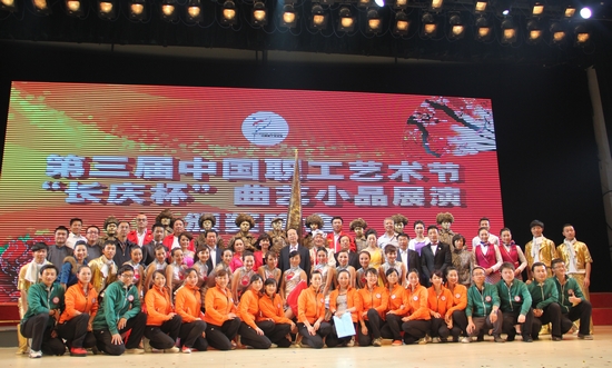 曲藝小品緊跟時代、貼近生活,以特有的藝術魅力深受廣大群眾喜愛,在群眾性職工文藝活動中占有重要地位。“長慶杯”曲藝小品展演是本屆中國職工藝術節舉辦的第六個單項活動,在這次活動中,全國各省區市總工會和文聯、各產業(行業)工會和文聯為搞好節目創作、征集和選送,做了大量卓有成效的工作。許多基層企業和職工文藝團體精心創作排練,表現出很高的熱情。參加現場展演的36個曲藝小品節目,就是從各地企業報送的近300個節目中經過層層篩選產生的。這些節目時代感強,生活氣息濃,產業(行業)特色鮮明,具有較高的藝術性和觀賞性,充分展示了職工曲藝和戲劇小品創作的豐碩成果,給我們帶來了美的藝術享受。經過這幾天緊張的展演,一批優秀節目脫穎而出榮獲獎項。在此,我謹代表藝術節各主辦單位,向獲獎節目及編導、演員和單位表示熱烈祝賀,向所有關心支持本次展演活動的各省區市總工會和文聯,各產業(行業)工會和文聯、各文藝團體以及各位評委表示衷心感謝。
