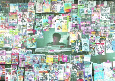南京街頭掛滿報刊雜志的書報亭。CFP