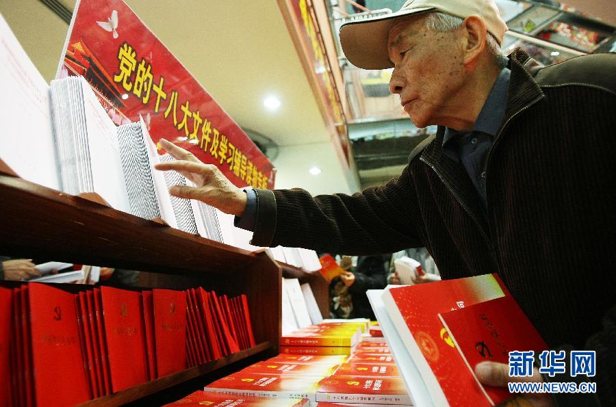 11月21日,讀者在北京圖書大廈挑選黨的十八大文件及學習輔導讀物。當日,由人民出版社出版的黨的十八大文件及學習輔導讀物首發式在北京圖書大廈舉行。 新華社發(李方宇 攝)