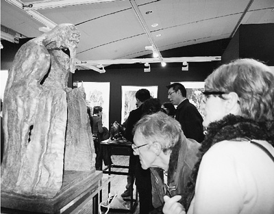 觀眾在盧浮宮欣賞中國雕塑作品。 王芳 攝