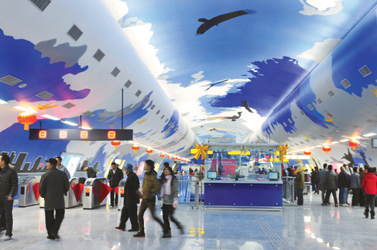 當日,重慶地鐵1號線沙坪壩至大學城段正式通車,位于該段的烈士墓站投入運營。據了解,該站的室內裝飾畫總面積達5000平方米,居全國第一。