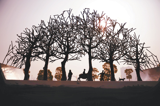12月25日,2012安徽馬鞍山國際鋼雕作品藝術展展出。參展的12件鋼雕展品由主辦方從來自36個國家和地區的640件投稿作品中精選而出,陳列在馬鞍山各景區。圖為在展覽上拍攝的“家園”鋼雕作品。