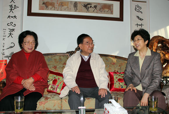 1月24日,中國(guó)文聯(lián)黨組書記、副主席趙實(shí)親切看望了中國(guó)文聯(lián)名譽(yù)主席周巍峙王昆夫婦。賀卡、賀信、慰問金、中國(guó)文聯(lián)新近出版的一套精品圖書、制作精美的工藝品……二老從趙實(shí)手中接過這些滿載著新年祝福的禮物,對(duì)中國(guó)文聯(lián)一直以來的關(guān)心表示感謝。趙實(shí)介紹了歲末年初中國(guó)文聯(lián)組織藝術(shù)家赴海南三沙為當(dāng)?shù)貪O民和駐島官兵送歡樂的情況,并就目前民族音樂研究方面存在的問題與二老探討。趙實(shí)對(duì)二老如此高齡依舊如此關(guān)注民族音樂發(fā)展表示欽佩。她說,去年黨的十八大勝利召開,提出要大力加強(qiáng)文化強(qiáng)國(guó)建設(shè),現(xiàn)在中央對(duì)文藝事業(yè)非常重視,文藝界呈現(xiàn)出大發(fā)展大繁榮的景象,希望二老今后繼續(xù)關(guān)心和支持文藝事業(yè)和文聯(lián)工作。