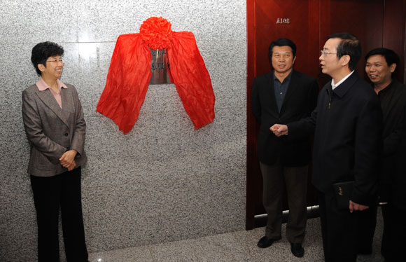 圖為中國文聯(lián)黨組書記、副主席趙實和黨組副書記、副主席覃志剛為中國文聯(lián)文藝志愿服務(wù)中心揭牌
