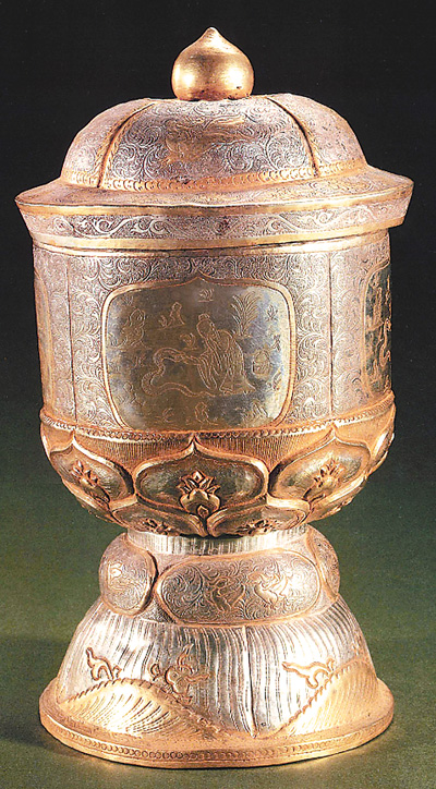 陜西扶風(fēng)法門(mén)寺唐塔地宮出土的金花銀香寶子。