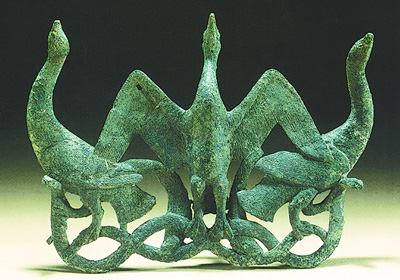 西漢三水鳥(niǎo)銅扣飾,云南省博物館收藏。 王 露攝