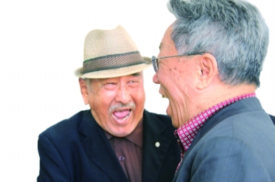王蒙(右)與老友見面。彭世團(tuán)攝