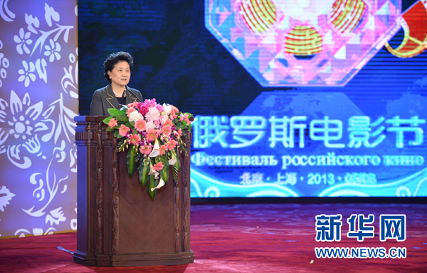 5月27日晚,“2013年俄羅斯電影節(jié)”在北京人民大會堂開幕,中共中央政治局委員、國務院副總理劉延東出席并致辭。 新華社記者 李鑫 攝