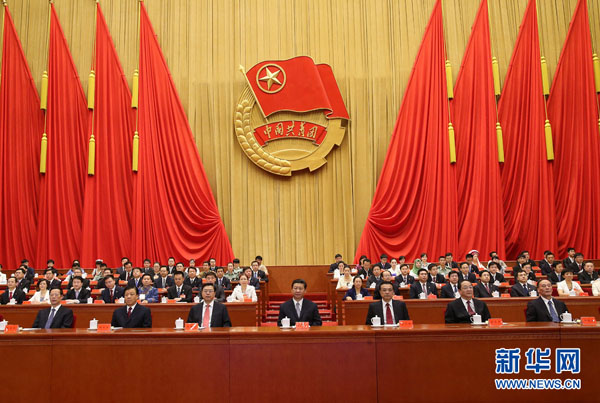 6月17日,中國共產主義青年團第十七次全國代表大會在北京人民大會堂開幕。習近平、李克強、張德江、俞正聲、劉云山、王岐山、張高麗等在主席臺就座,祝賀大會召開。新華社記者劉衛兵攝
