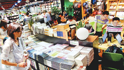 在上海市淮海路上的一家書店內(nèi),市民在選購書籍。新華社記者 陳 飛攝