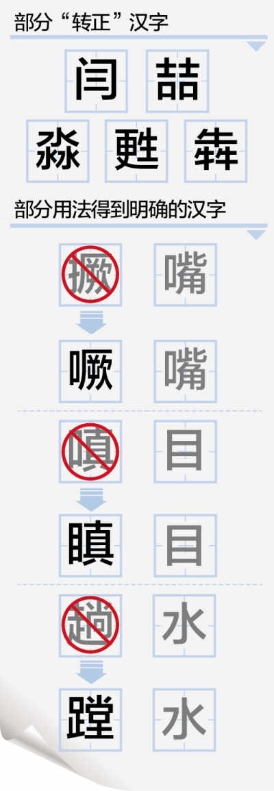 新中國成立以來,我國相繼發布了多項重要的漢字規范,但隨著時代發展,舊有標準已不能滿足現實需要。一些名字中的生僻字,讓人們在電腦錄入、戶籍管理、辦理登機時撓頭不已,急需一部規范漢字表來加以規范。新字表中,原先一些字典查不到、電腦打不出的生僻人名、地名用字,現在被“驗明正身”,從異體字的“黑戶”中被拉了出來,有了合法地位,科技新名詞、新術語也都有了專用字。