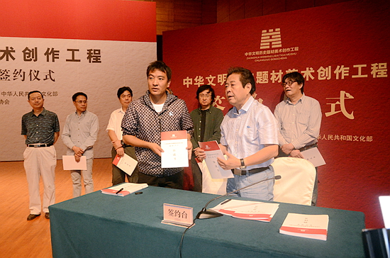 如此宏大的歷史主題,如此巨大的財政投入,如此矚目的民眾期待,對于參與“工程”的每一個美術家而言,責任都是沉甸甸的。“工程”草圖觀摩展開幕式上,入圍藝術家與主辦單位正式簽約,這意味著每一個參與其中的美術家都許下了一個莊嚴的承諾。入圍“工程”的美術家代表孫景波表示,從當初的激情澎湃到如今的忐忑不安,深感責任之重大。“我們現在就像是進入考場的考生,所有人都期待我們交上一份滿意的答卷,我們也將不負眾望,帶著歷史責任感與崇高使命感,盡最大努力完成任務。 ”孫景波說。
