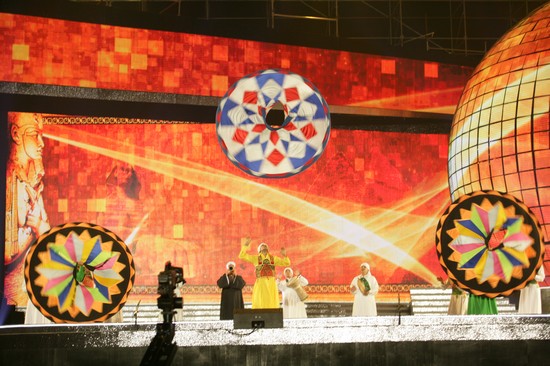 開幕展演中,來自五大洲的民間藝術家們同唱《友誼地久天長》 孟祥寧攝
