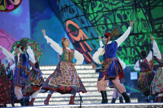 波蘭瑪祖夫舍國家歌舞團在開幕式上演出舞蹈《盧布林舞》 孟祥寧攝
