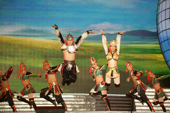蒙古國國家歌舞團在開幕式上演出舞蹈《薩爾特的雄鷹》 孟祥寧攝