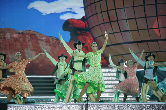 美國猶他州立猶他山谷大學國標舞團在開幕式上演出舞蹈《美國西部土風舞》 孟祥寧攝