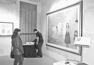 11月21日,在巴塞羅那現代藝術博物館舉行的何家英當代繪畫展上,觀眾在欣賞畫作。本報記者 丁大偉攝