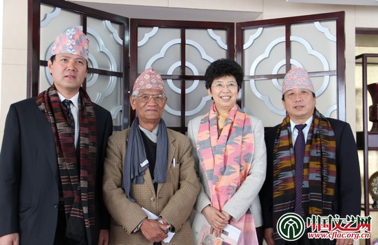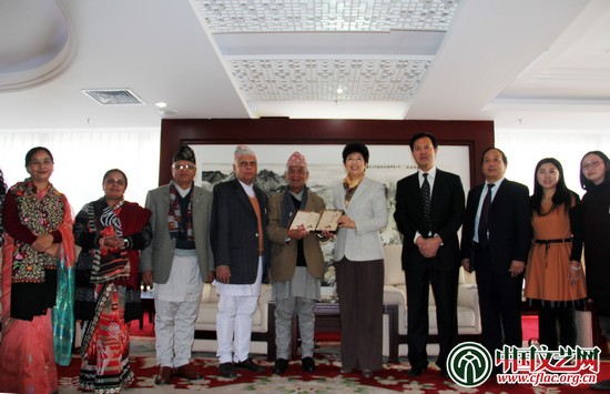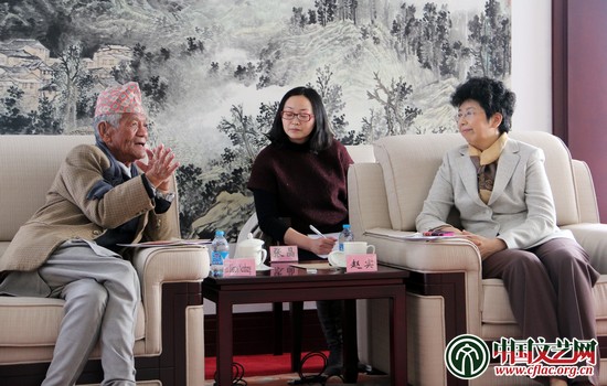 趙實代表中國文聯對代表團的來訪表示歡迎,并簡要介紹了中國文聯的基本情況及中國文聯和各全國文藝家協會近年來與尼泊爾進行文化交流的情況。她說,中國文聯一向重視發展與尼泊爾文藝界的交流合作。自20世紀80年代,中國文聯與當時的尼泊爾皇家學院開始往來,直至本世紀初,雙方互派代表團訪問,一直保持良好的交往關系。此次尼泊爾學院代表團訪華,將進一步增進中尼兩國文藝家之間的交流和友誼。她建議,在2014年適當時候,中國文聯組派代表團對尼泊爾進行回訪,與尼方續簽《合作備忘錄》 ;定期組派兩國文藝家,特別是青年文藝家互訪;雙方在藝術教育、藝術培訓等方面開展合作;促進各自出版的文藝刊物進行交換。