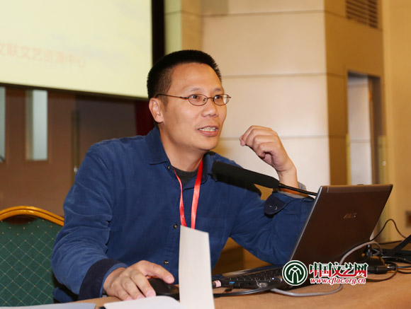圖為中國文聯文藝資源中心副主任、中國文聯信息化建設領導小組辦公室副主任冉茂金介紹了中國文聯文藝資源中心情況。中國文藝網 張志勇 攝