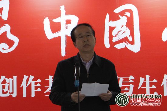 中國文聯(lián)黨組成員、副主席左中一在開幕式講話中高度肯定了美術(shù)家赴基層采風(fēng)創(chuàng)作的奉獻(xiàn)精神。中國文藝網(wǎng) 馬李文博 攝