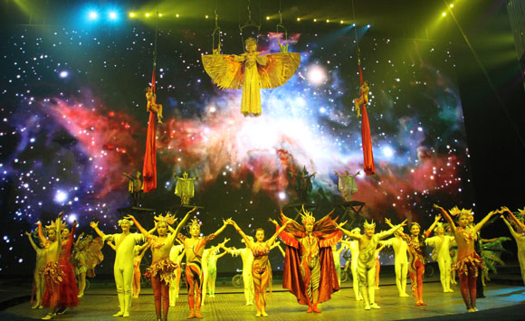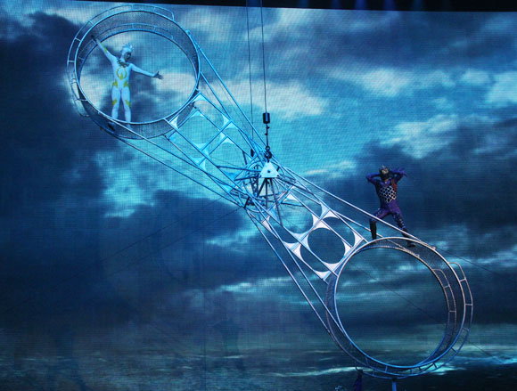 圖為頒獎儀式后,河南省雜技集團的大型雜技劇《水秀》上演,為觀眾呈上一場視覺盛宴。中國文藝網(wǎng) 何瑞涓 攝
