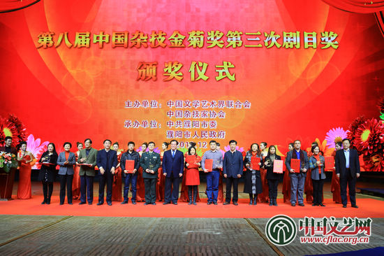 12月27日,由中國文學藝術界聯合會、中國雜技家協會主辦的第八屆中國雜技金菊獎第三次劇目獎頒獎儀式在河南濮陽舉行。本次劇目評獎中,全國16省、直轄市、自治區、解放軍共30個雜技院團的40臺雜技劇目報名參賽,參賽劇目的數量和質量較前兩屆均有較大幅度提升,最終評出了優秀劇目獎、創新獎、最佳音樂獎、最佳編導獎和評委會特別獎。