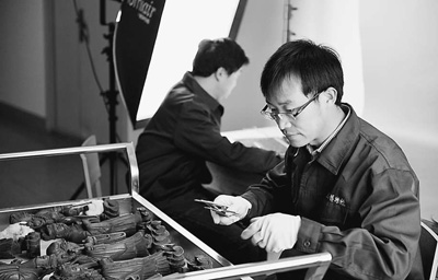 山西省博物院普查人員正在測量文物,以便于給文物上“身份證”。國家文物局供圖
