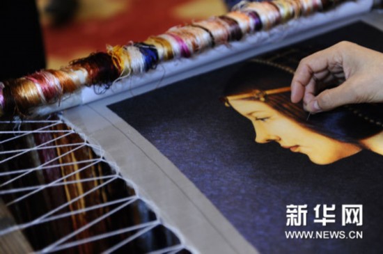 國家級高級工藝美術師朱壽珍展示蘇繡技藝。新華社記者 金良快 攝