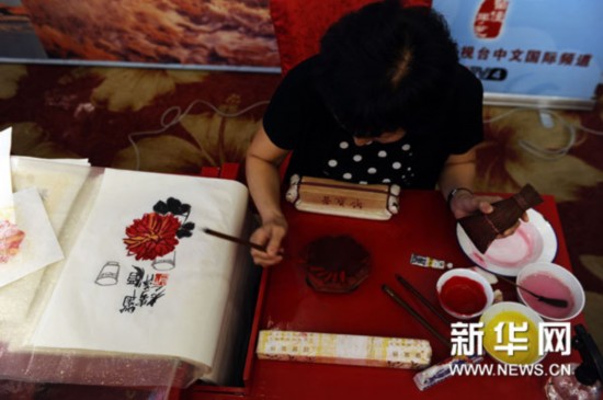 木版水印國家級傳承人高文英展示技藝。新華社記者 金良快 攝