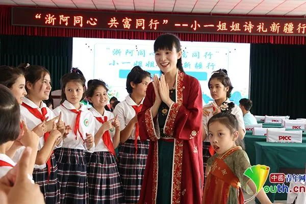 “浙阿同心 共富同行”——小一姐姐詩禮新疆行活動現場,小一姐姐正在和同學們交流。活動主辦方供圖