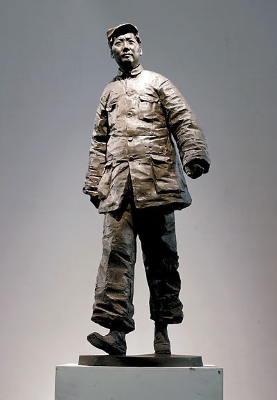 而為李象群贏得更廣泛贊譽(yù)的則是其近年來(lái)主要的創(chuàng)作母題——偉人肖像,最具代表性的是為毛澤東和鄧小平所作的一系列雕塑肖像。有學(xué)者認(rèn)為,在李象群為毛澤東和鄧小平所作的塑像中,采用了樸實(shí)的視角,而這種偉大在平凡的映襯之下體現(xiàn)出更加動(dòng)人的感情力量。島子的解釋是,李象群的歷史人物肖像雕塑具有后現(xiàn)代歷史學(xué)認(rèn)知意義,他以藝術(shù)的方式表達(dá)了人們不再相信歷史人物“高大全”的教化功能,他的毛澤東形象以及系列歷史人物肖像與當(dāng)代藝術(shù)中的波普化、符號(hào)化非常不同之處,也正在于人物心理的深度描繪。而這種深度刻畫,來(lái)自藝術(shù)家不惜田野考察之勞苦,源于對(duì)偉人傳記的閱讀和研究,發(fā)自其對(duì)歷史真相的認(rèn)知和追問(wèn)。正是因?yàn)檫@樣,那件為紀(jì)念鄧小平百年誕辰,矗立于其家鄉(xiāng)四川廣安的《布衣鄧小平》,才會(huì)被鄧小平的親屬與家鄉(xiāng)人民交口稱贊,甚至有人在看過(guò)后,忍不住落淚了。