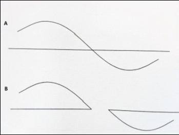 圖6.A顯示一條直線與曲線的交叉。我們不會把A圖當成B圖,也就是說,我們眼睛會把直線繼續當直線,曲線繼續當曲線,不會突然把曲線想成了直線。這個規律,稱之為連續律。