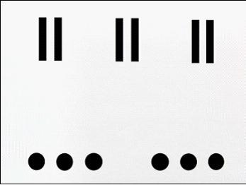 眼睛對形象的修飾、整理,是有規律的。圖3. 顯示了六條豎線及六個圓點;我們眼睛看的時候,會把圖像看成三對平行線及兩組的三個圓點。把接近的形狀當成一類,這個叫做「接近律」。
