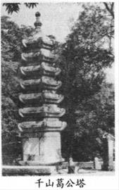 在千山北溝無量觀下半山腰處,有一座聞名遐邇的葛公塔。塔身用白色花崗巖石砌造,塔高8.78米。南側小龕內,嵌漢白玉塔銘:太清堂上二十代律師月潭真人明新之墓,龕外石刻“淡泊寧靜”四個字。塔前立有兩塊石碑。一塊碑上刻的是墓主葛月潭方丈功德傳歷,一塊碑上刻的是發起人和捐修塔的人名。細看發起人名錄,竟有大名鼎鼎的張學良。