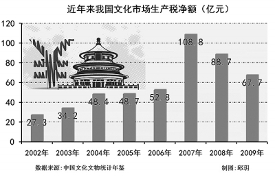 1994年我國稅制改革以來,已制定并出臺了一系列針對文化市場的稅收扶持政策。應該說,中國文化市場的發展繁榮,稅收扶持功不可沒。同時,文化市場的發展潛力與態勢日趨顯著,相關稅收額也迅速增加。從2007年到2010年,我國文化市場四年稅收收入增速為82.14%,比全國稅收收入59.33%的增速高出22.81個百分點。