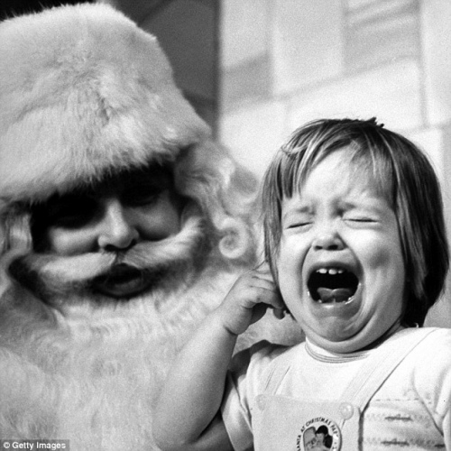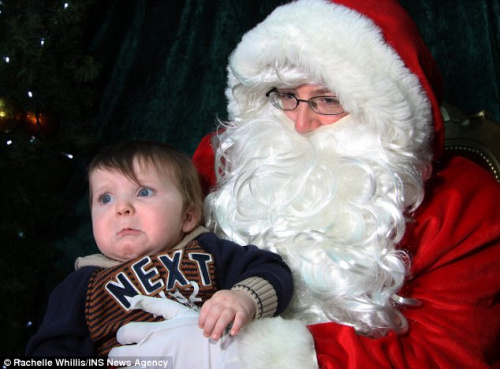據外電11日報道,一趟能看到圣誕老人的旅行應該是孩子們在圣誕節里最大的樂趣之一了。但是,當真正面對著一個巨大的、不熟悉的身影(有時還黏貼著可疑的塑料胡須)時,這些小孩了們顯然還是受到了驚嚇,甚至試圖逃跑。