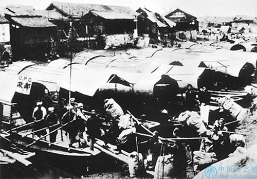 用船只運(yùn)送郵件的場(chǎng)景 杭嘉湖水網(wǎng) 20世紀(jì)20年代 嘉興郵電博物館提供