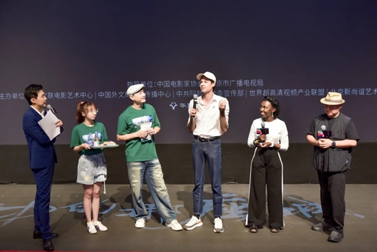 青年編導(dǎo)代表為導(dǎo)師獻(xiàn)上“水滴杯”