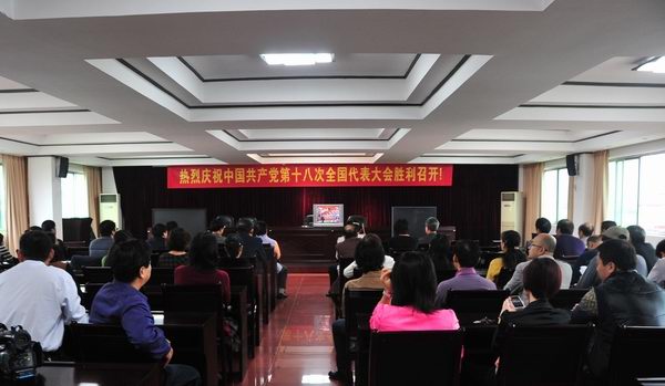 11月8日,廣西文聯全體干部職工聚集一堂,觀看黨的十八大開幕盛況電視直播。