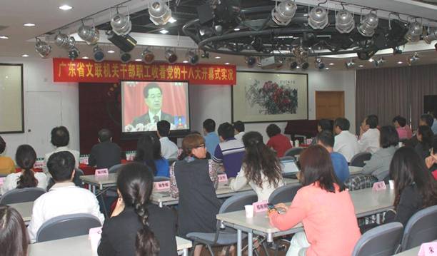 廣東文藝職業(yè)學院、廣東嶺南美術出版社有限責任公司和廣東書法院等省文聯(lián)直屬單位,也分別組織所屬干部職工集中收看了黨的十八大開幕式。
