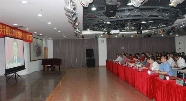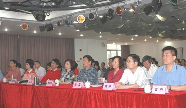 省文聯(lián)領導帶頭認真聆聽胡錦濤總書記重要講話(左起:劉小毅、李仙花、廖曙輝、白潔、曹利祥、李萍、陳丹、黃浩)