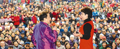 從四面八方趕來觀看陜西省文聯組織的送歡樂下基層活動的老百姓。袁景智/攝