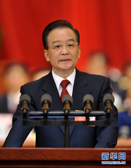 3月5日,第十二屆全國人民代表大會第一次會議在北京人民大會堂開幕。國務院總理溫家寶作政府工作報告。 新華社記者 黃敬文 攝
