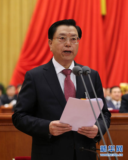 3月5日,第十二屆全國人民代表大會第一次會議在北京人民大會堂開幕。張德江主持會議。 新華社記者 蘭紅光 攝